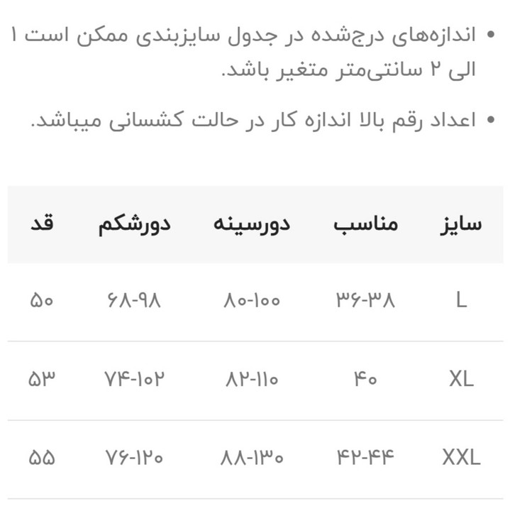 دوایکس لارج دور سینه ۹۴ تا ۱۲۰