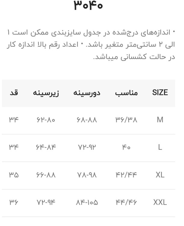مدیوم ۳۶ الی دو ایکس لارج ۴۶/۴۸