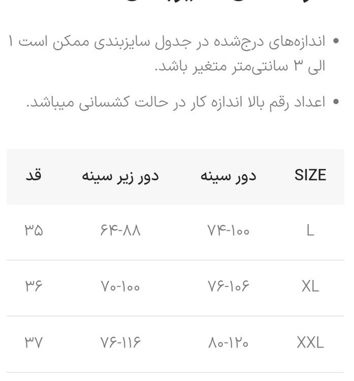 سایزبندی داره جدول سایزبندی داخل اسلاید عکس