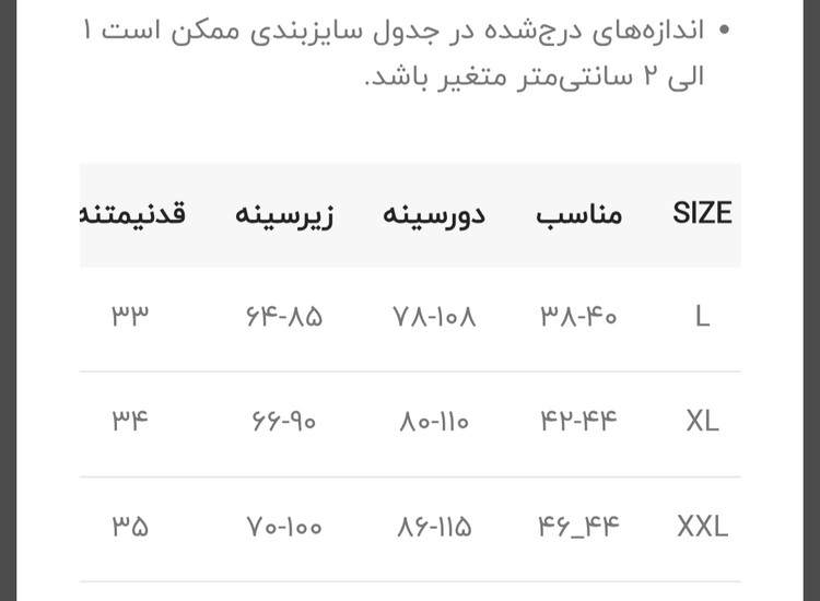 سایزبندی داره از ۳۶/۴۸ جدول سایزبندی در اسلاید عکس ها