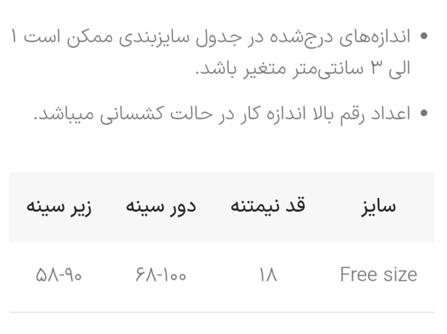 قد نیمتنه ۱۸