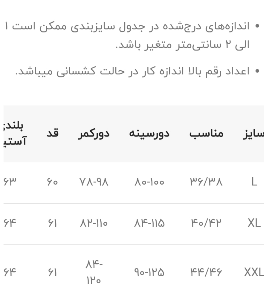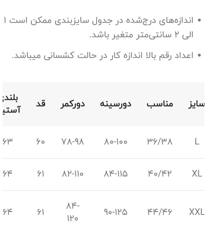۳ سایزبندی جدول سایزبندی در اسلاید عکس ها